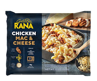 Grilled white chicken, cavatappi pasta, and white cheddar cheese sauce. Ready in the microwave in only 11 minutes with 18g of protein per serving.