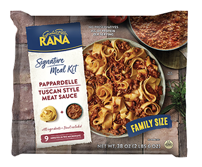 Tuscan style meat sauce made with beef, tomatoes, onions, pork, and carrots combined with pappardelle. Ready in less than 10 minutes!