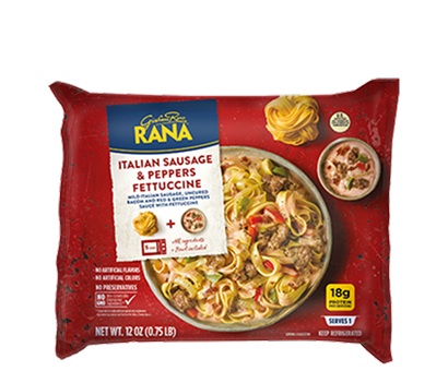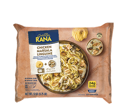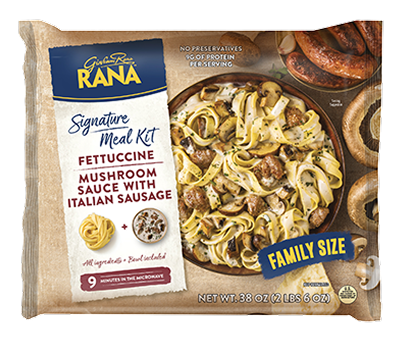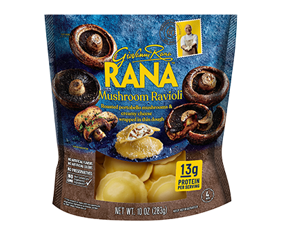 Our creamy sauce is cooked in our kitchen, from a traditional recipe of Mr. Giovanni Rana. Our mushrooms are sauteed with onion, garlic, and white wine.