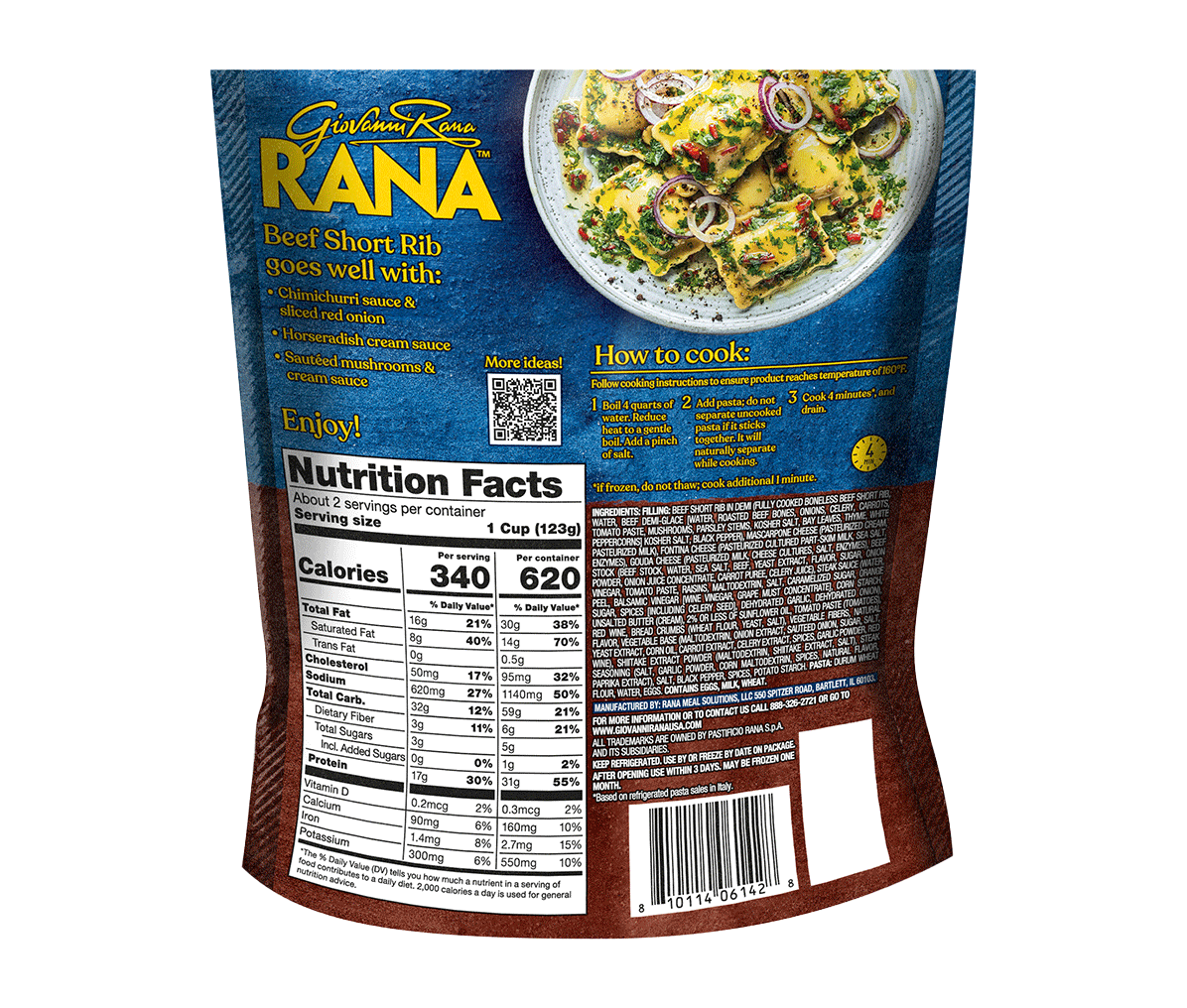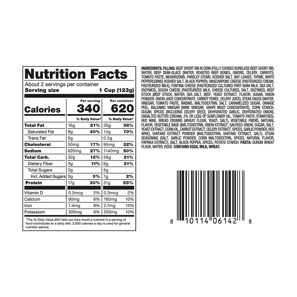 Slow-cooked to tender perfection, the rich, melt-in-your-mouth beef short rib filling is encased in a thin pasta dough, offering a perfect balance of bold and deep flavors. Each bite delivers a flavorful experience, making this ravioli the ideal dish for anyone seeking a protein heavy and satisfying meal