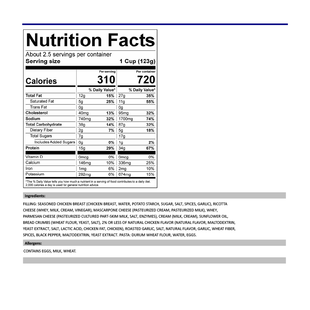 Our Chicken & Roasted Garlic Ravioli uses lean and tender chicken breast that is oven roasted according to the Italian tradition.