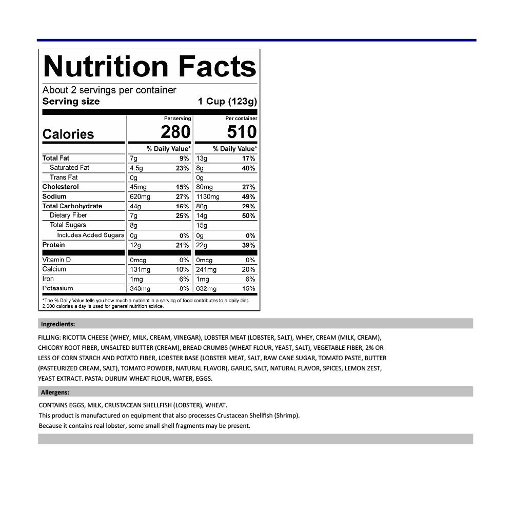 Our Lobster Ravioli brings the sea’s finest flavors to your plate! Succulent lobster meat, paired with creamy ricotta cheese, and wrapped in delicate, thin dough to create a truly luxurious dish.
