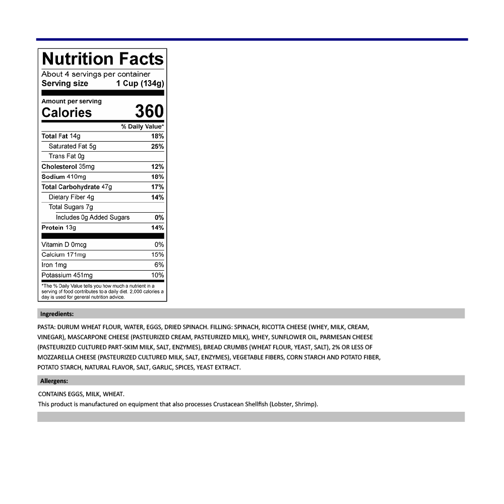 Our Spinach & Cheese Tortelloni features tender spinach leaves wrapped in a thin and delicate dough, filled with a creamy ricotta cheese blend that’s rich and satisfying. Packed with protein, this delicious dish is not only a nutritious option but also incredibly easy to prepare in just 3 minutes.