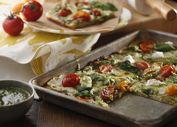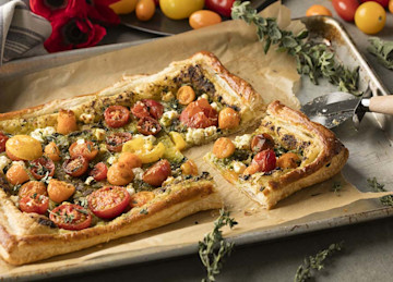 Puff Pastry Pesto Pizza with Ricotta & Cherry Tomatoes