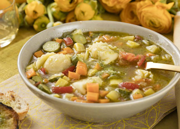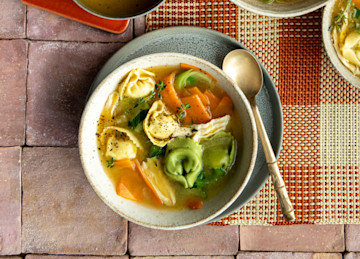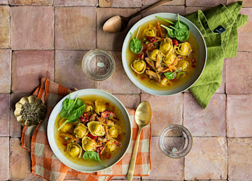 CHICKEN & MOZZARELLA TORTELLONI IN A CHICKEN SOUP WITH SUNDRIED TOMATOES & VEGETABLES