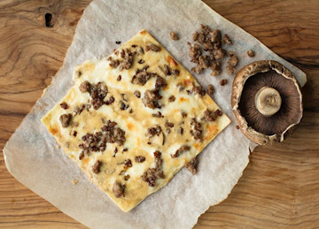 FLAT BREAD WITH SAUSAGE AND PORTOBELLO MUSHROOM SAUCE