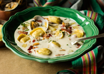 New England Clam Chowder with Cheese Lovers Tortelloni
