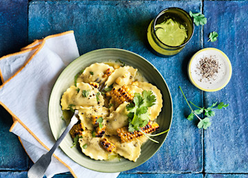 PULLED PORK RAVIOLI, BUTTER, CORN & CHOPPED CILANTRO